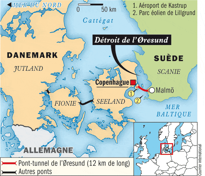 L’histoire de l’Øresundsbron est celle d’un compromis, jusque dans son nom, séparé des deux pays scandinaves : le Danemark et la Suède par un détroit. Le nom du pont vient de la contraction du danois Øresund et du suédois bron (le pont), cet ouvrage hybride de 16 kilomètres, mêlant pont à haubans, île artificielle (Peberholm) et tunnel sous-marin. Les travaux ont nécessité cinq ans de travaux de 1995 à 1999.